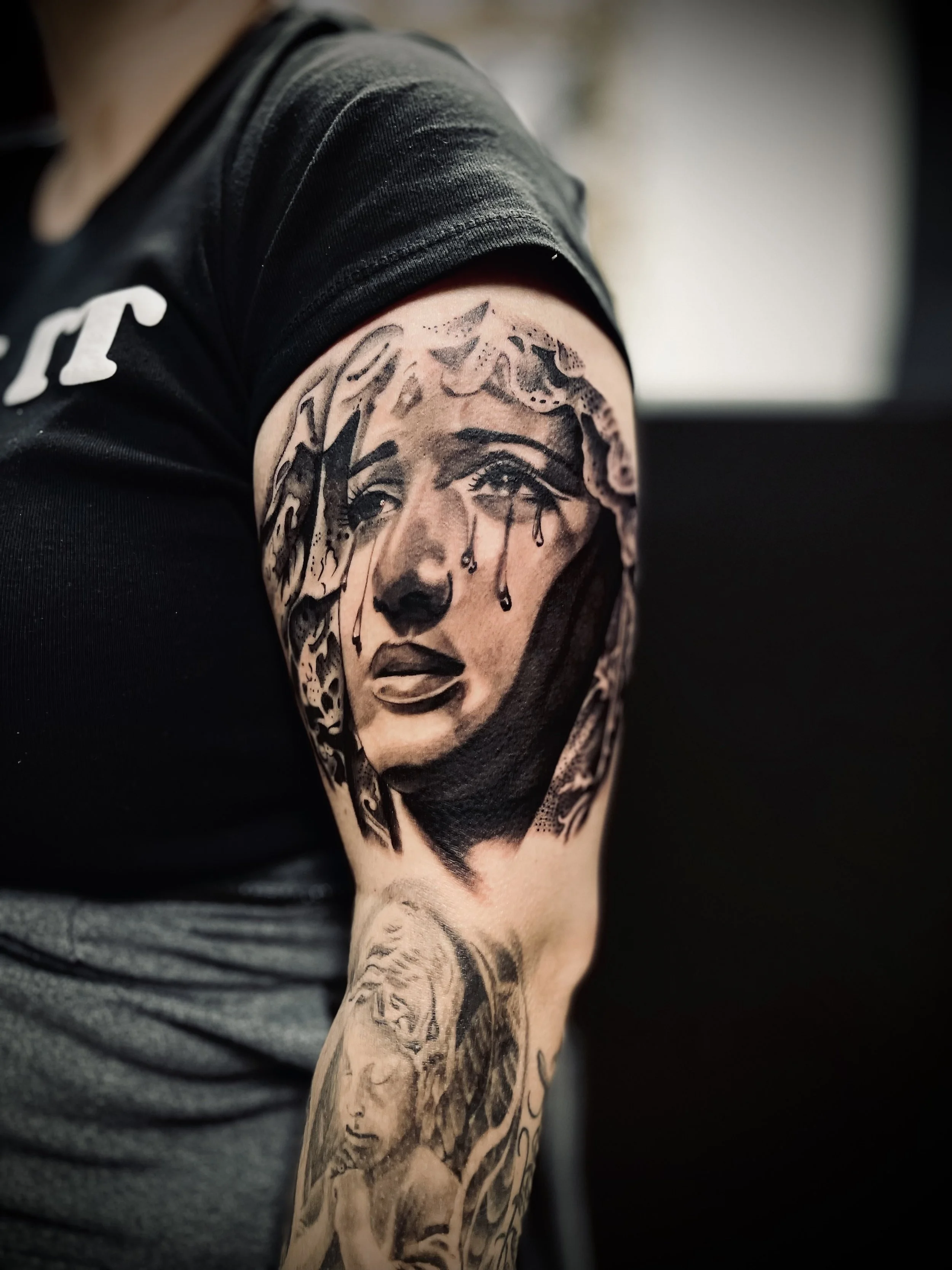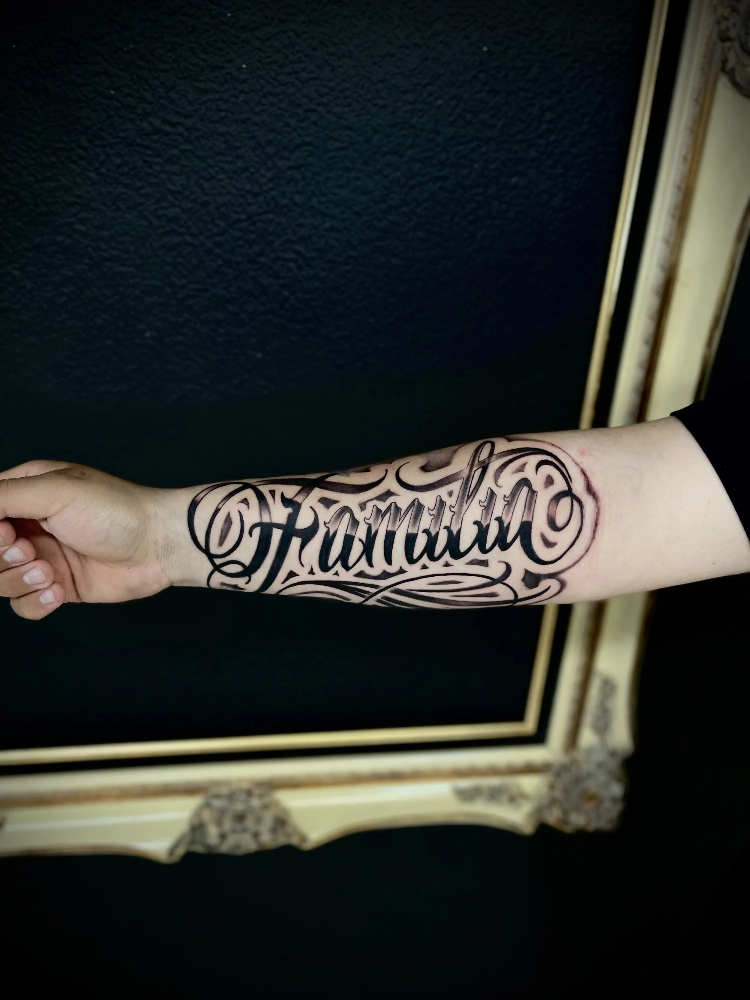 I specialize in Black and Grey Realism, Chicano-style work, lettering, and more. My passion lies in creating custom, one-of-a-kind pieces that reflect each client’s vision and story. For me, tattooing isn’t just about ink — it’s about turning creativity into permanent, meaningful art people carry with them for life.